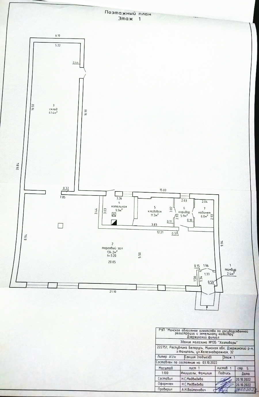 Капитальное строение с инв. №620/C-44315, магазин «Хозтовары» пл. 252,2 кв.м. (Минская обл., Дзержинский р-н, г.Фаниполь, ул. Железнодорожная, 32)